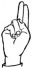 На ћирилици написано РАДНА СПАСОЈЕВИЋ састоји се из 15 слова [?]. Исписано ћириличном једноручном азбуком за глувонеме:
